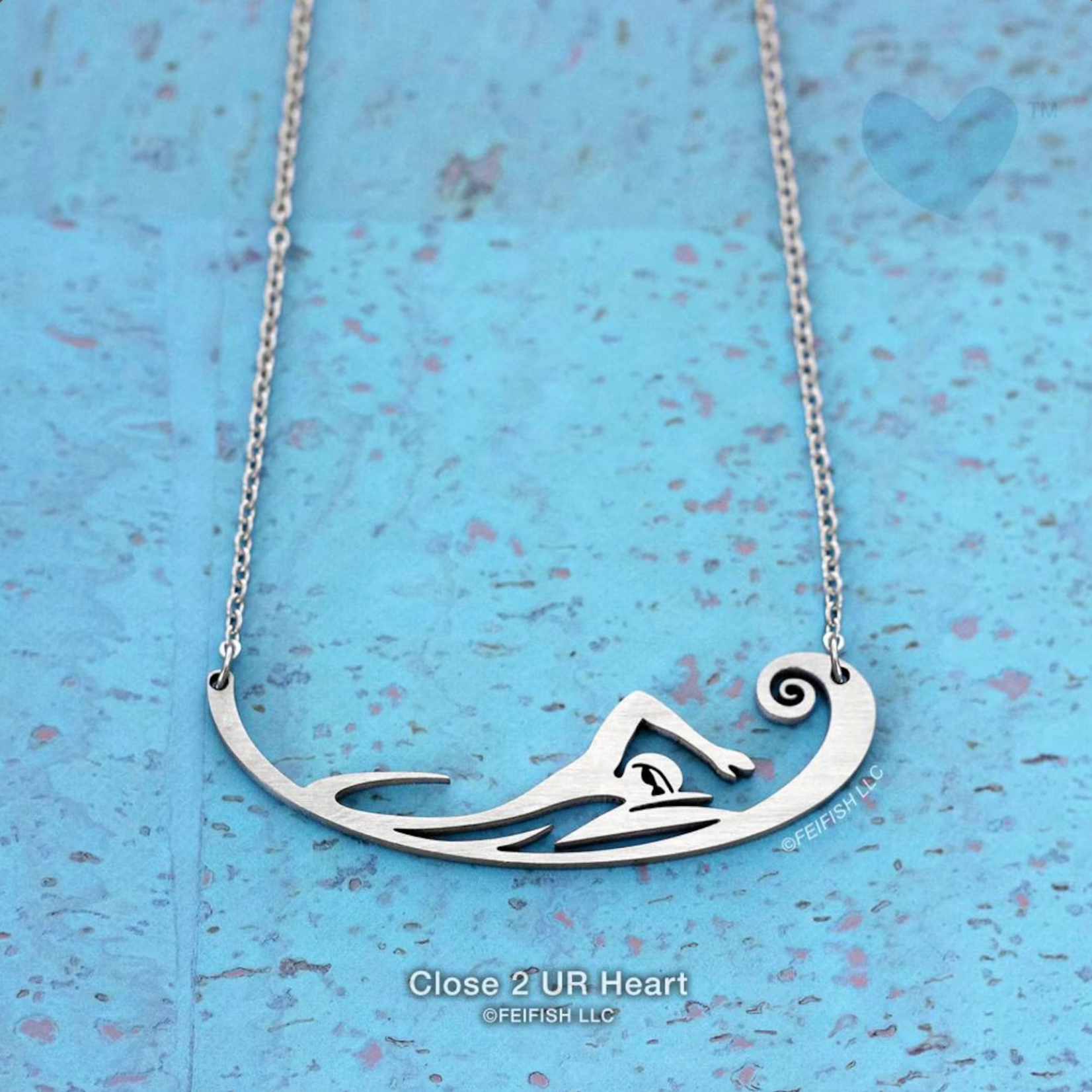 Stainless steel pendant measures about 2-inches wide, with a16+2-inch stainless steel necklace and clasp.